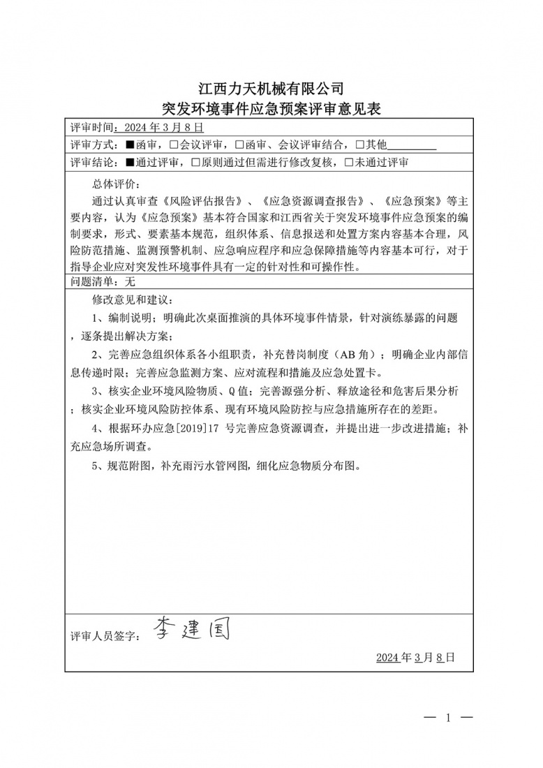 企業事業單位突發環境事件應急預案評審表-李建國
